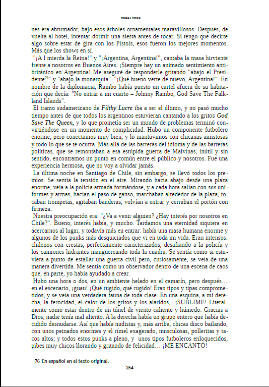 Sin censura, sin pelos en la lengua y a calzón quitado: así habla John Lydon y esta es la característica que mejor define a”La ira es energía”. A diferencia de lo que ocurriera con su autobiografía, en este caso Lydon reflexiona sobre lo que hizo, sobre las consecuencias que tuvo y, lo que es mejor, sobre la época que le toco vivir. Este punto de vista, más maduro y articulado, no ha perdido ni un ápice de frescura y descaro. Lydon no tiene reparos en decirnos lo que piensa sobre personajes como Vivienne Westwood o Malcolm McLaren, sobre Sid Vicious -un gran amigo perdido- o sobre temas como el punk, la música, la enseñanza, la creatividad o la moda. Lydon es energía en estado puro y reivindica a la ira como motor para construir y seguir adelante.